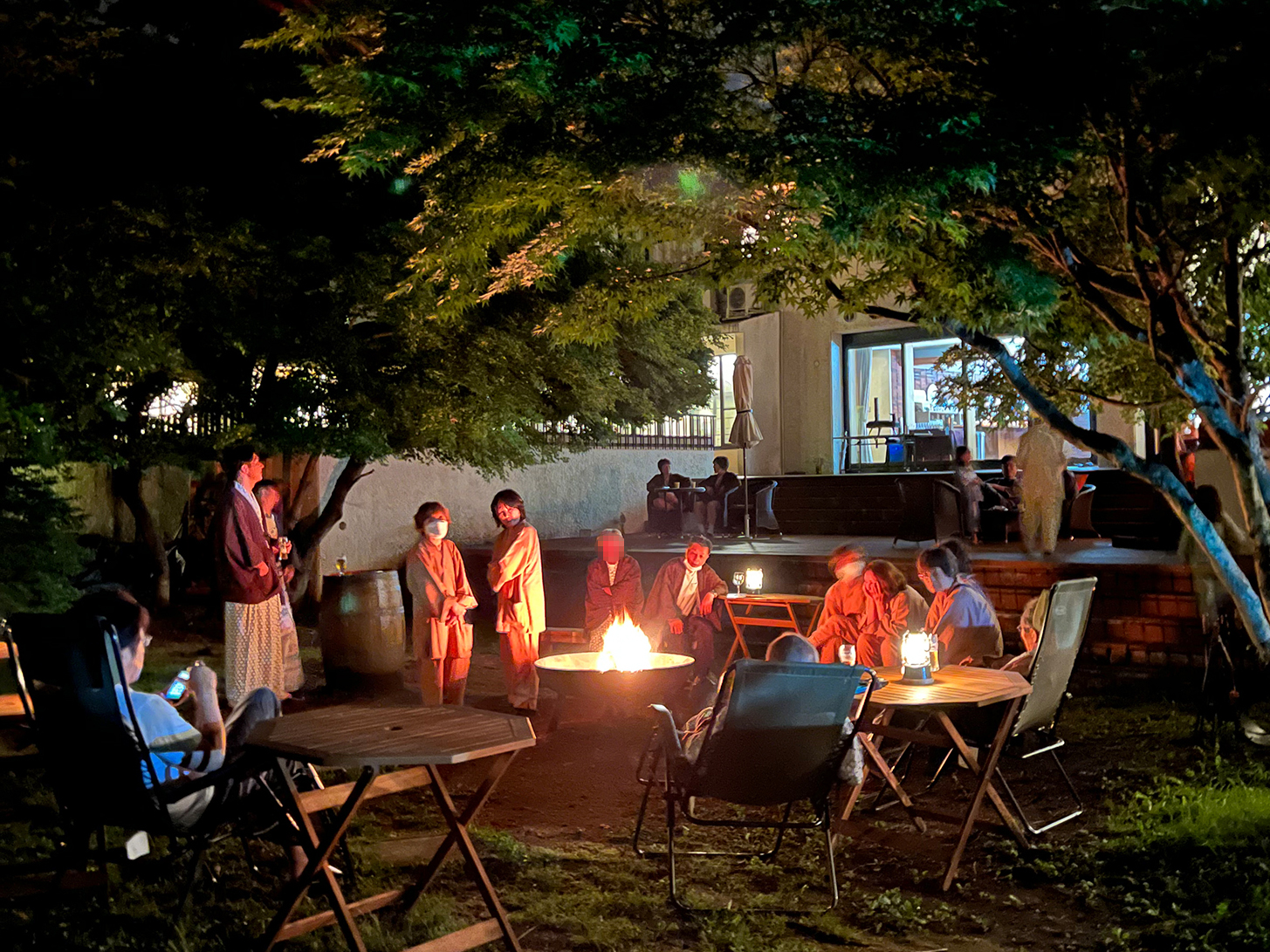 中庭でのたき火(21時~22時)。ナイトBARのドリンクを持ち込んで、星空と炎の非日常空間をぜひ味わってね。